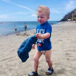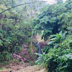 Zum Abschluss noch eine beschwerlicheWanderung durch den Urwald. Befürchtungen, Mutter und Kind könnten hierbei Schaden nehmen erwiesen sich als unbegründet. Tristan im Sturzwasser des Wasserfalls:Meer informatie