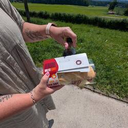 Stannade för att köpa vingette innan vi åker in i Österrike. Passade på att köpa lite lunch också. Nära Alperna nu😎