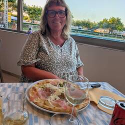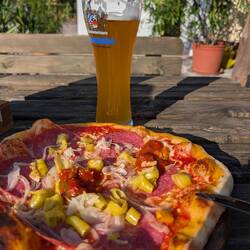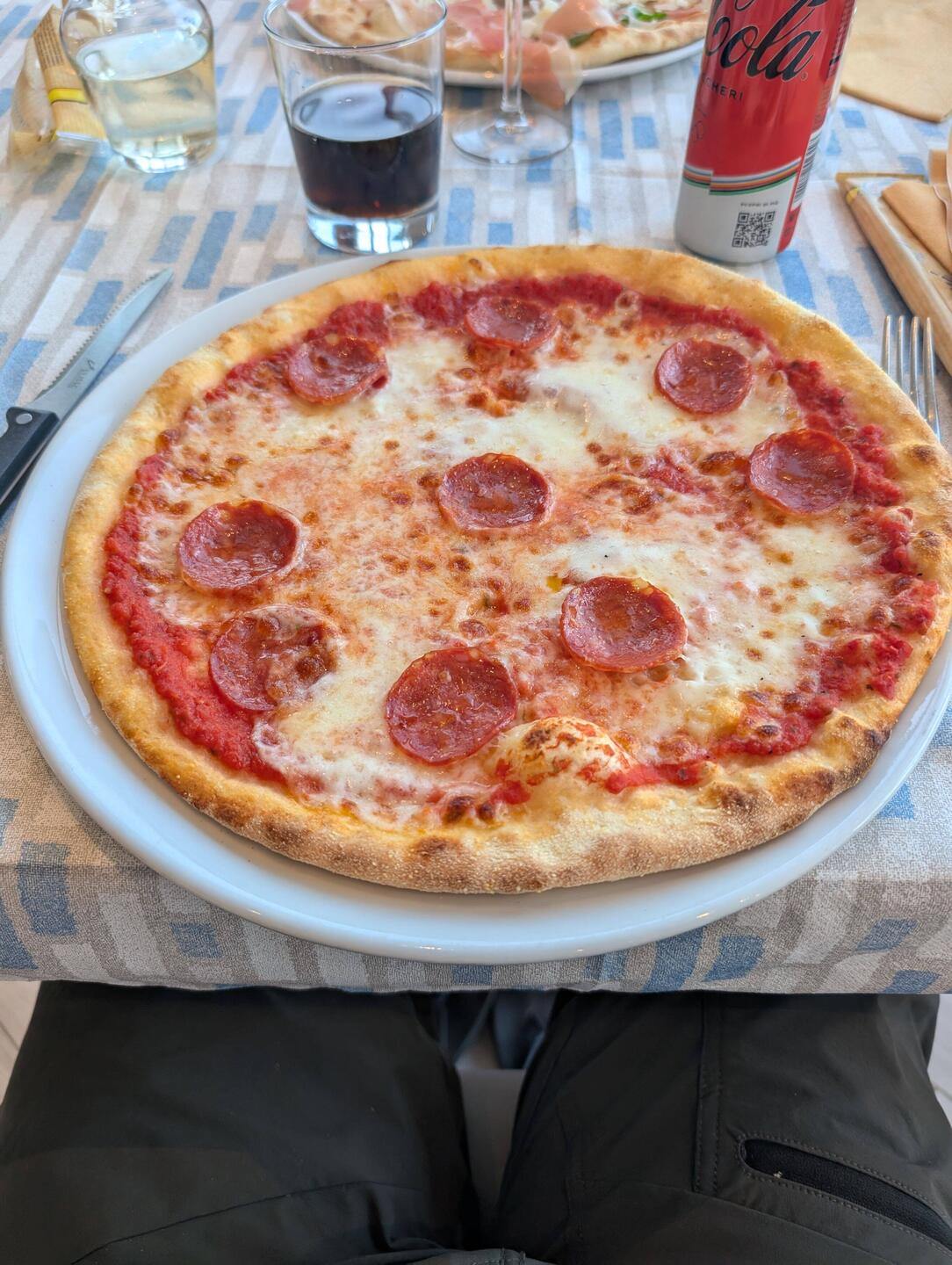 Slappade i solen när allt varit ordning. Pizza som kvällsmat från campingens restaurang.