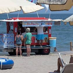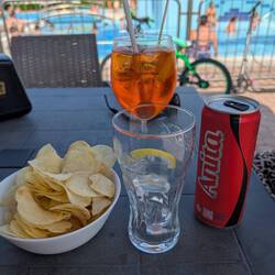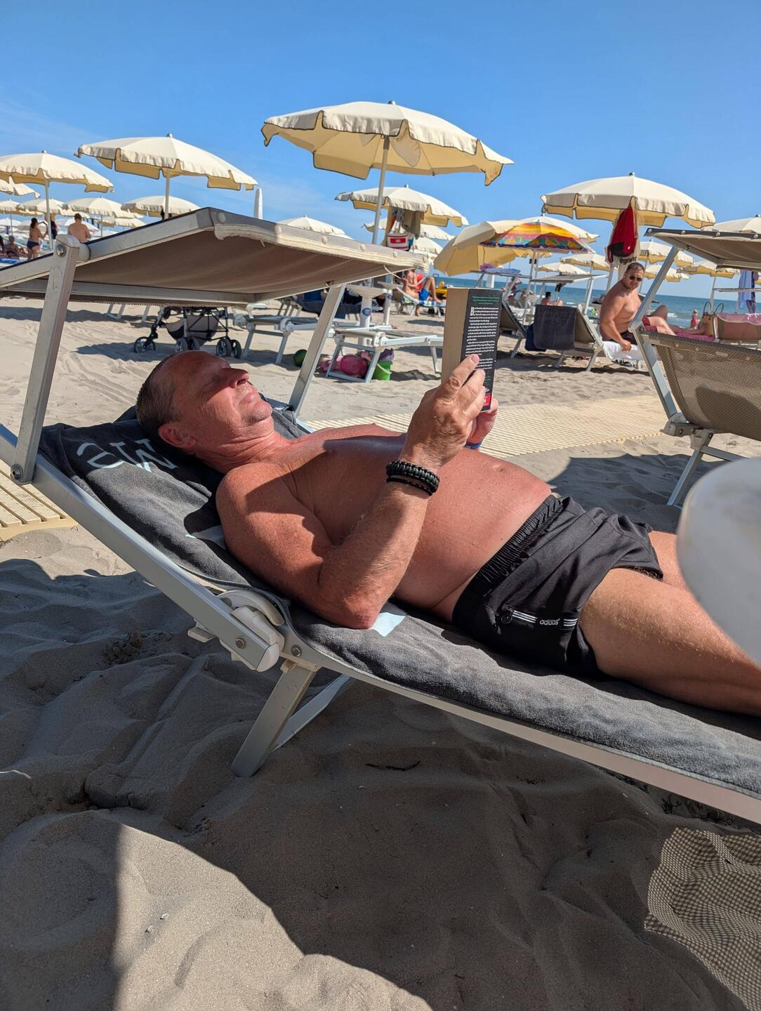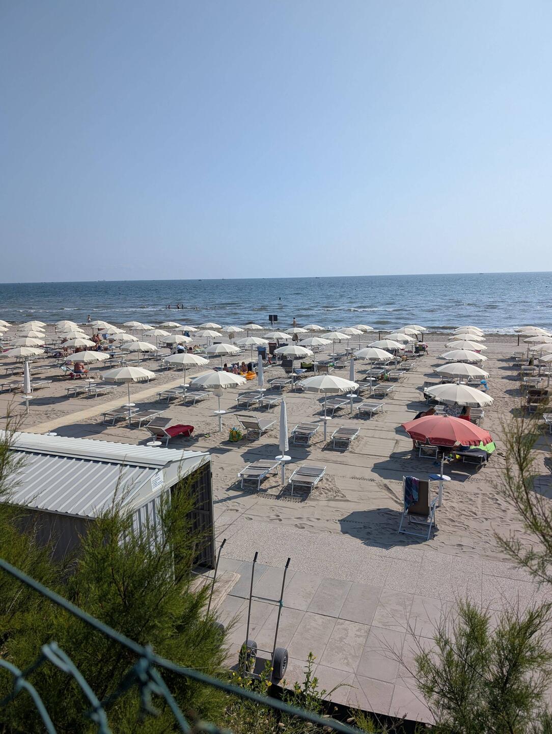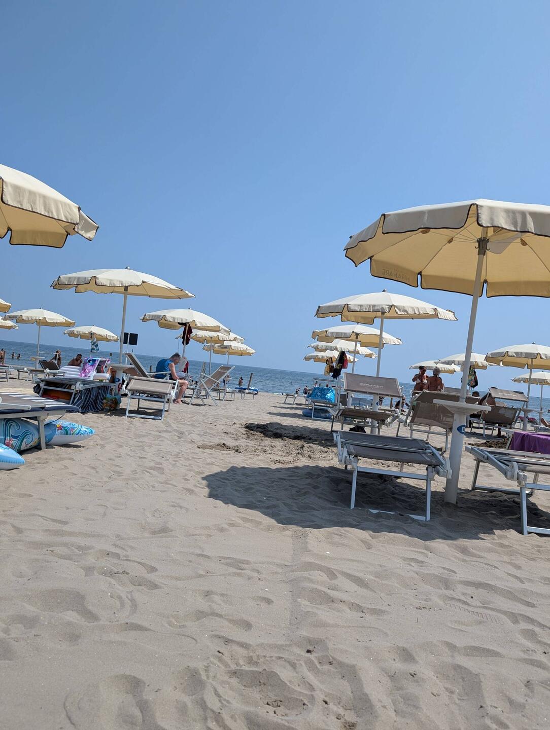 Efter frukost så bar det iväg till stranden.som vanligt i Italien är det inte bara att välja lediga solstolar. Först upp till receptionen för att betala och få en lapp med Plats nummerMeer informatie