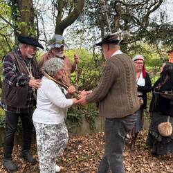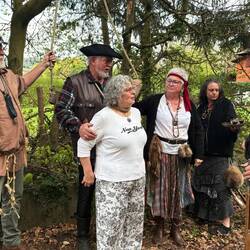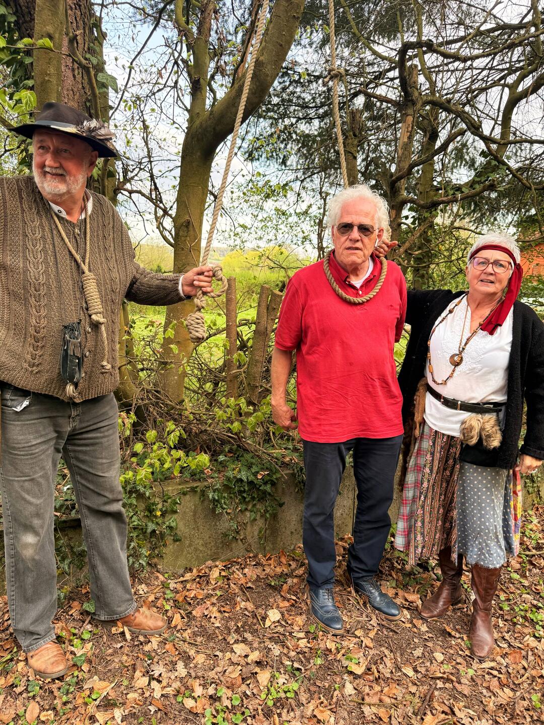 Eine Räuberbande überfällt die arglose Gruppe.