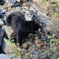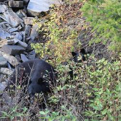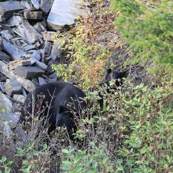 Kaum abgefahren und etwas traurig das wir ausser zwei Eichhörnchen und Schmetterlinge keine Tiere beobachten konnten, sahen wir am Strassenrand eine Bären-Mama und ihr junges.