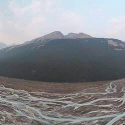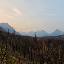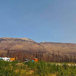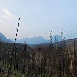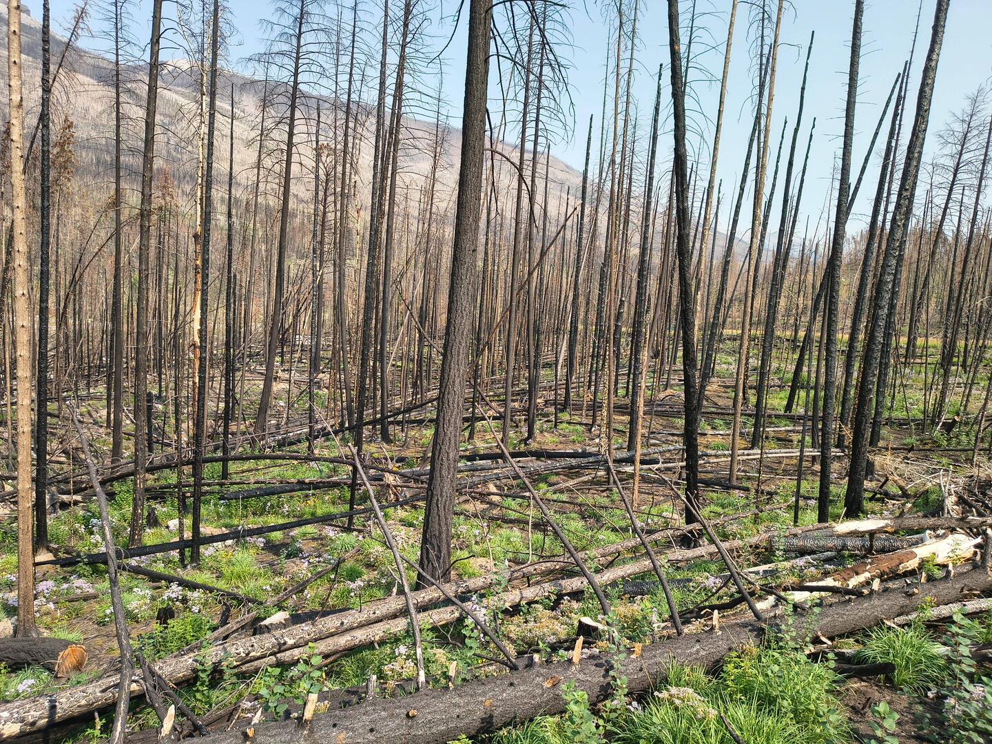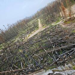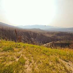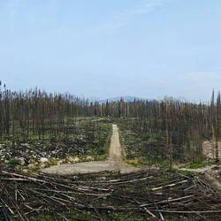 Hier sind die Wälder streifen Weise wieder grün. Wechseln sich aber ab mit verbrannten Stellen.