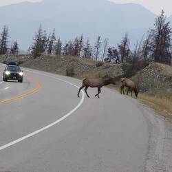 Gleich nach Jasper konnten wir zwei Herden ( Rudel) beobachten. Solch grosse Tiere. Herrlich😍
