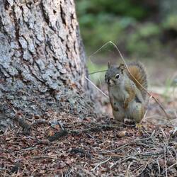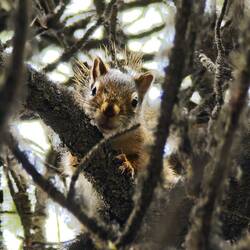 Wir hofften auf Elche, bekommen aber wunderschöne Umgebung, viel Stille und Eichhörnchen zu sehen.