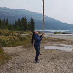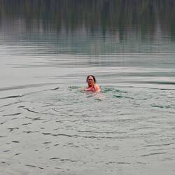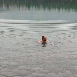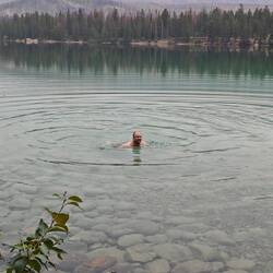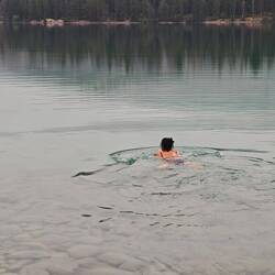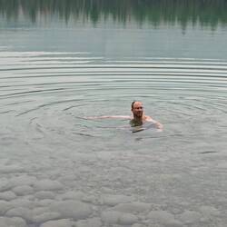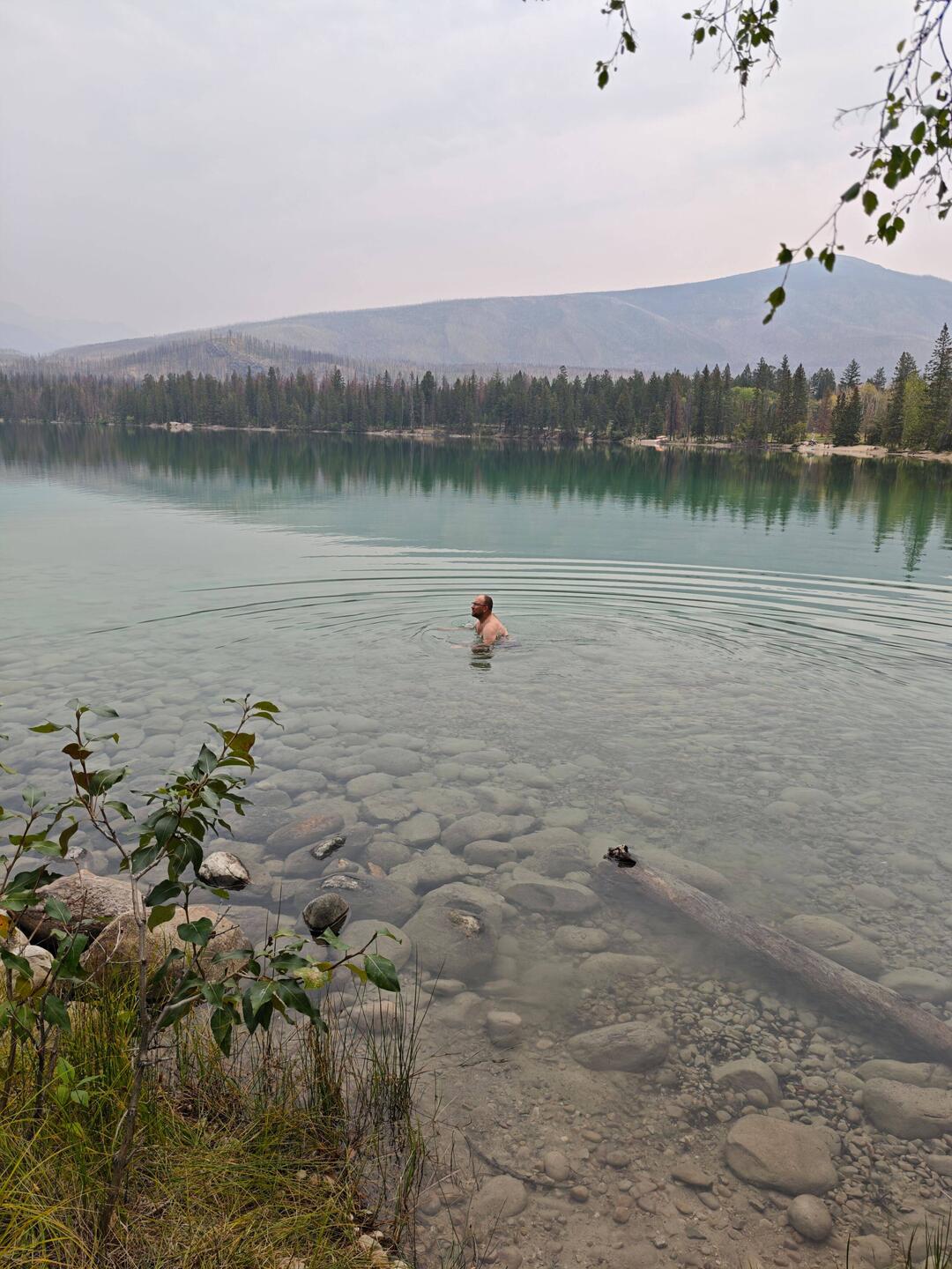 Natürlich müssen wir ein Bad nehmen im Edith Lake. 😜