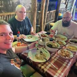 Heute starteten wir ausgeschlafen in den Tag – sogar so ausgeschlafen, dass Sören noch eine Extrarunde im Bett drehte, während wir schon zu viert mit dem TukTuk zum Supermarkt fuhren.