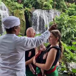Danach wollten wir uns einen Wasserfalltempel ansehen – doch anstatt stiller Natur wartete ein spirituelles Erlebnis auf uns. 😄