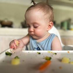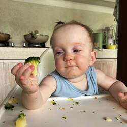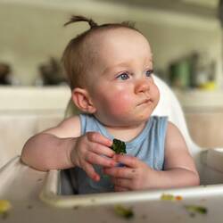 Zum Mittag gab es zum ersten Mal eine volle Portion Fingerfood – Kartoffelwürfel, Karottensticks und Brokkoliröschen 🥦.Read more