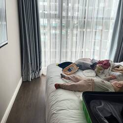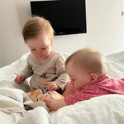 Ein entspannter Start in den Tag: Nach dem Frühstück ging’s – wie es sich für den ersten Tag an einem neuen Ort gehört – noch mal für alle zurück ins Bett. 🥰