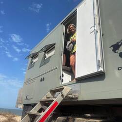 Nach 5 Tagen Strandurlaub fahren wir weiter. Die ersten 40 km gibt es Offroadpiste. Ziemlich am Ende wussten wir von einem Baum, für den wir zu hoch waren. Vorsichtig fahren wir hinein und der dickeLæs mere
