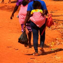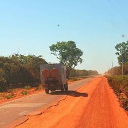 Wir verlassen den staubigen Platz gegen 10.30 Uhr. Susanne hat noch Cashew Äpfel gepflückt, die wir alle noch nie vorher gegessen haben. Man kann sie durchschneiden und das saftige FruchtfleischLæs mere