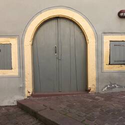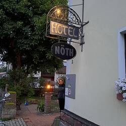 Ankunft im Schlosshotel Dolgesheim, Essen beim Italiener, Absacker im Schlosshof