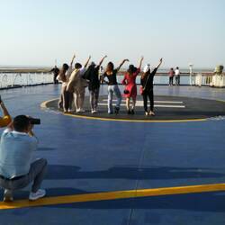 J'embarque sur le ferry l'après-midi. Tout le monde y est adorable, on me réserve un accueil de VIP : on ne scanne pas mes bagages ni mon vélo, j'ai une cabine pour moi seule et aux heures des repas, un employé vient me chercher, m'escorte et me fait griller la longue queue des passagers. Certains insistent même pour porter mon plateau repas !