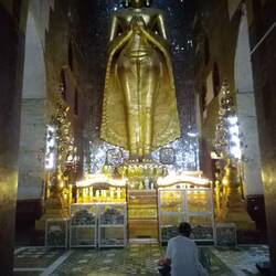 Dans les temples aussi, les Birmans semblent fans des reproductions de Bouddhas à l'infini. Comme à Thanboddhay où de mini, moyens et grands Bouddhas remplissent chaque cm carré des murs, porches ou colonnes, dedans comme dehors. Dire que le Bouddha en question ne souhaitait pas qu'on le représente. Vœu particulierement ignoré en Birmanie !
