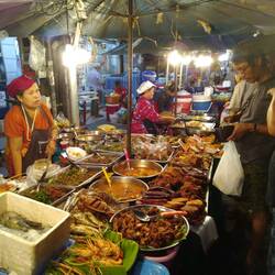 J'y mange bien et pour pas cher (je le réaliserai apres coup avec des prix parfois 10 fois plus élevés dans les zones touristiques !) , constatant que les birmans ne comprennent pas du tout l'anglais et que mon langage des signes est inefficace (exemples : je me retrouve avec un pad thai en plus de mon plat -du coup emmené en balade aux grottes... -, ou avec du thé bouillant dans ma gourde plutôt que de l'eau purifiée). Mais en toutes circonstances ils restent très polis et bienveillants.