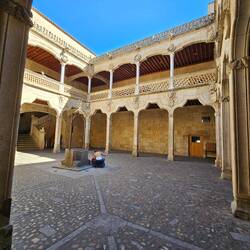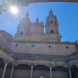 Six-Bridges-Rally 2024PengembaraTunjukkan perjalananTambah ke senarai baldiKeluarkan dari senarai baldiKongsiHari 8Sabtu, 14 September 2024 3:44 PTG ☀️ 25 °C Altitud: 770 m SepanyolArroyo del Zurguén40.954831, -5.66704140°57’17” N 5°40’1” WSalamanca 14 September 2024, Sepanyol ⋅ ☀️ 25 °C Unser Ziel war das Casa de las conchas - die heutige Bibliothek - an deren Fassade über 300 Jakobsmuscheln angebracht sind. Wir hatten um die 27-28° C - die Menschen tummeln sind im Schatten der großen alten Gebäude.Ein Bild von der Kathedrale mussten aber auch sein. Salamanca ist sehr schön, eine Stadt, für die man sich ein anderes Mal mehr Zeit nehmen darf.Baca lagiLihat terjemahan8 suka Tunjukkan perjalanan