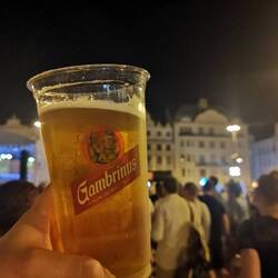 Abends geht's nach Pilsen rein. Gambrinusbier und Pilsner Urquell an der Kathedrale wo eine Band spielt.