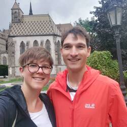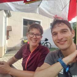 Kurz vor dem Ziel dürfen wir noch auf einem Wald-Schotterweg fahren und dann laufen die letzten Km von allein. Dabei resümieren wir ein bisschen Ungarn, die Begegnungen vom Vortrag, unsere Tour und wie wir es gemacht haben und träumen schon ein bisschen vom Ziel und rechnen wie lange wir noch brauchen werden. In 19 Etappen insgesamt werden wir am Ziel sein (Ursprünge Idee waren: die Tour in 18 bis 20 Etappen). Wahnsinn und was für ein vorfreudiger Gedanke wenn wir es geschafft haben.