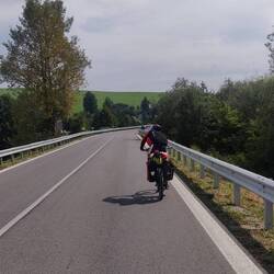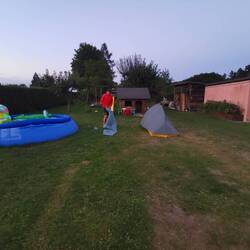 Erst 28 km an der Elbe entlang, dann verlassen wir die Richtung Nord-Osten. An der Elbe haben es sich viele Angler bequem gemacht und sich heimisch eingerichtet mit Zelt, Feldbett, Bier. Wir fahren an wunderschönen gemütlichen Schrebergärten vorbei. Es gibt immer wieder kleine stopps für Wasser, Eis, Riegel, Bananennachschub. Mittagspause in Novy Bydzov und dann geht's bis Miletin auf einen Campingplatz.