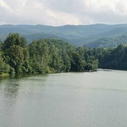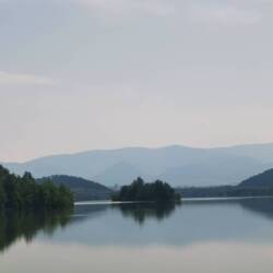 Wir übernachten am Stausee. Abduchen im Algenauslauf. Wir wissen nicht ob es davor oder danach eckiger ist. Immer wenn ein Flugzeug am Horizont erscheint, denke ich, jemand steht an der Staumauer oben und leuchtet auf und herab. Gute Nacht