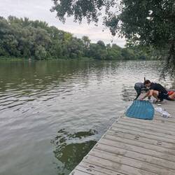 Vor dem Frühstück gönnen wir uns eine ausgiebige Yoga und Dehn Runde auf dem Steg mit Restaurant und Anlegestelle auf dem Fluss Theiß/Tisca. Die letzten 3 Etappen sind in den Beine. Da merkt man wie wohltuend ein Ausdehnen und Strecken ist.