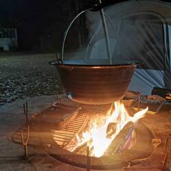 Hier auf dem Campingplatz ist niemand sonst. Und es gibt alles: in der Küche finden wir Wurst und Holz fürs lagerfeuer ist auch da. Natürlich wird gegrillt.
