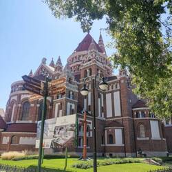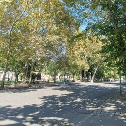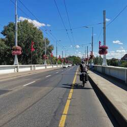 Auch am Tag gefällt uns die Stadt. Viele Gebäude im Jugendstiel, groß, hoch, schick, verträumt. Die vielen Bäume spenden Schatten. Es gibt eine ausgezeichnete Fahrradführung durch die Stadt, sogar mit Linksabbiegespur. Genial. Viele junge (!) Menschen sind mit dem Fahrrad unterwegs, an jeder Ecke und Straßenlaterne sind Räder angestellt und abgesperrt. Wir laufen an der Uni und einer Bibliothek vorbei. Es fühlt sich nach einer jungen linken Stadt an. Wir fühlen uns direkt wohl. Kleine Cafés, auch viel Fastfood: MC D., Subway, KFC, Döner, Pizza, ungarische Küche finden wir nicht. Lidl, Aldi, Spar, Rossmann alles da.