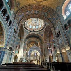 Wir setzen uns in den riesen Dom, die größte Kirche Ungarns. Wow. Alles bemalt, mit Kuppel. Erinnert an den Vatikan.