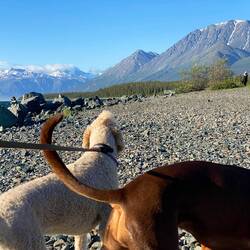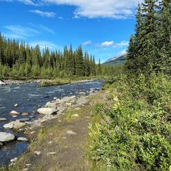This was for sure a bucket list. We had a great campground to walk the girls by the river. We hiked in some dense shit that scared me and we saw Denali!