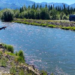 Our last full day in Alaska was spent checking out Wrangall NP and fishing the little Tok River. Eagle Trail campground was great! Jeff also made curry with some fresh shrimp we caught!