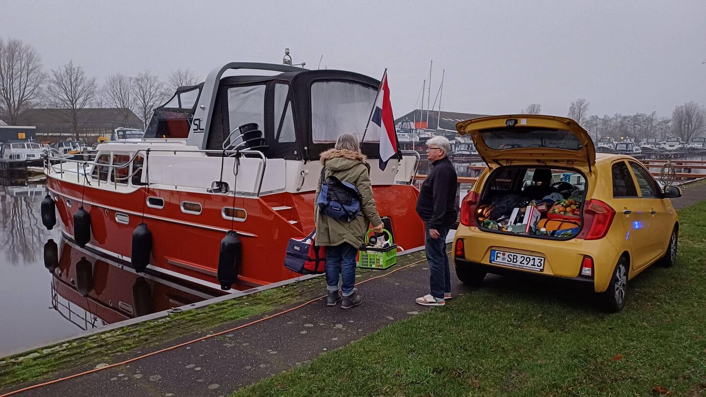 Festgemacht in Joure, Geburtstagsschlücken. Zum Abendessen ganz leckeres Curry von Bettina gekocht.