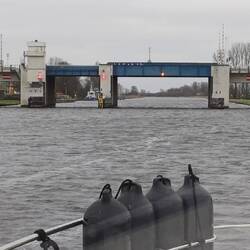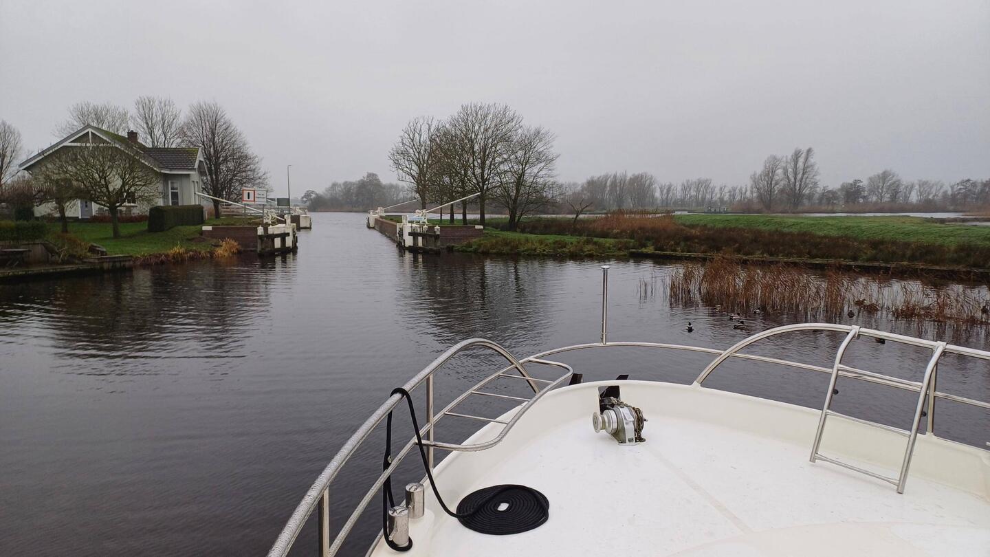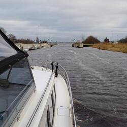 Von Joure ging es durch die enge Schleuse aufs Hauptfahrwasser. Leider wurde die Schleuse nicht bedient und wir mussten 9 km Umweg fahren