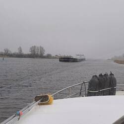 Nachdem wir Jirsum abgefahren sind, legten wir uns in Kanalnähe. Es gab Kartoffel-Kürbissuppe, viel Gelächter und ein Gruppenfoto im kalten Wind.