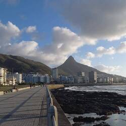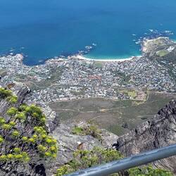 Östlich am Tafelberg entlang ging es bis zur False Bay. In Fish Hoek bog der Bus ab nach Westen. Viele Eindrücke und Blicke in den flachen Teil von Kapstadt.