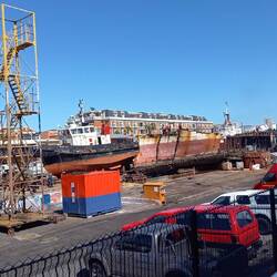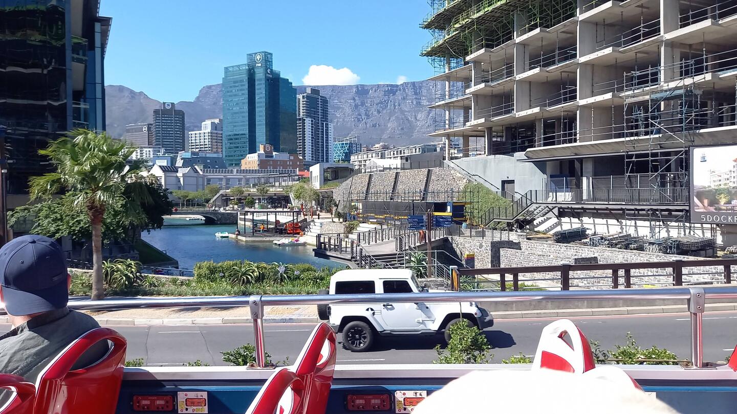 Die Rundtour mit dem roten Bus ging durch den Hafen von Kapstadt. Ich sah natürlich lauter Schiffe