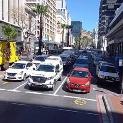 Blick und Fahrt zum Tafelberg