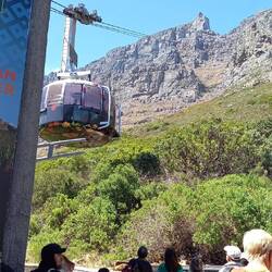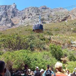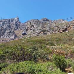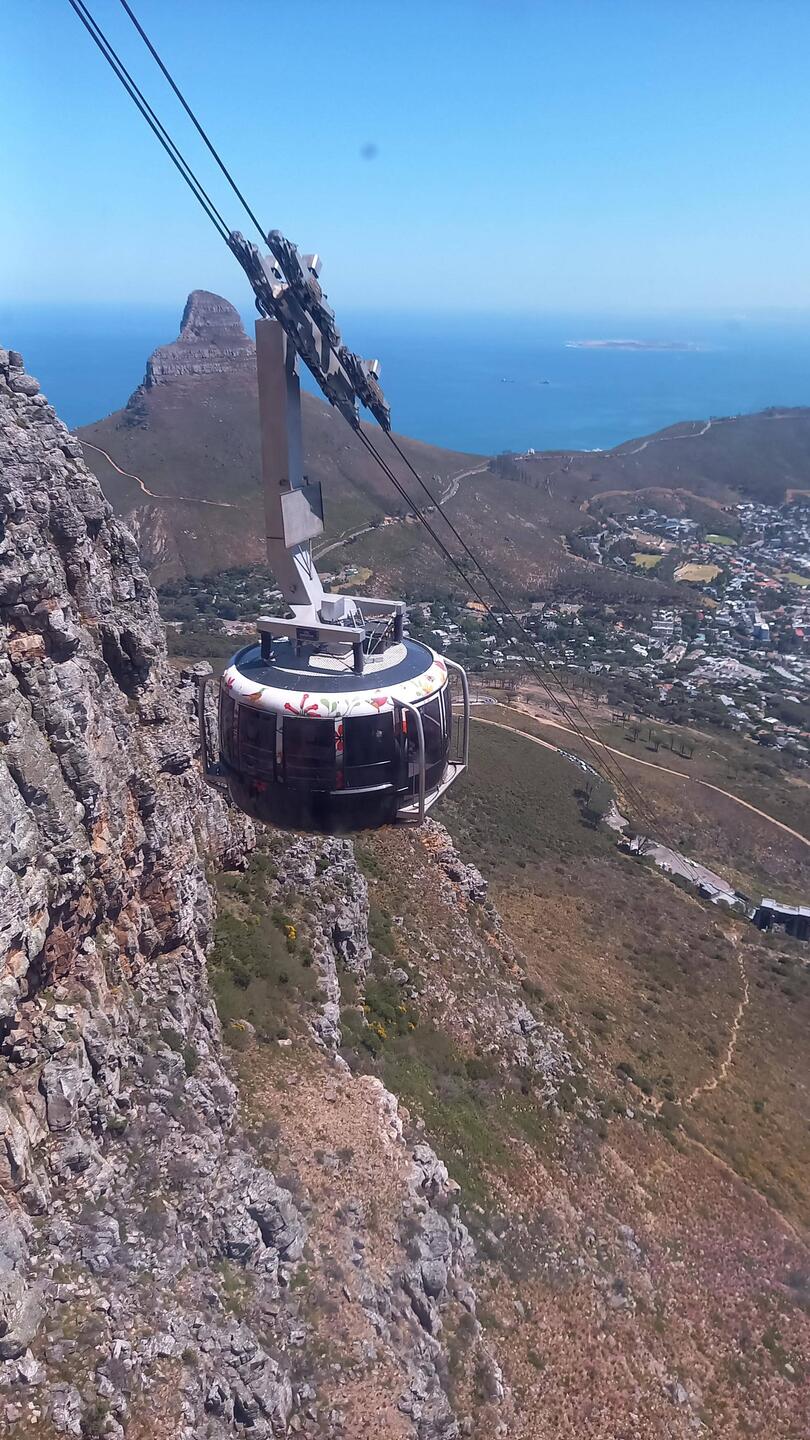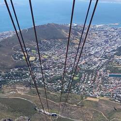 Beeindruckend überragen der Tafelberg und der Lionshead die Stadt. Wir sahen von ferne, dass die Seilbahn auf den Tafelber nun doch fuhr und hopsten an der Seilbahnstation aus dem Bus.
