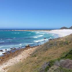 In Kommetje steht ein hoher Leuchtturm, der den Schiffen den Weg nach Kapstadt weist. Herrliche Landschaften, Strände und Meer.