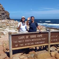 Martina war mit dem Bus von Kap zu Kap gefahren. Am Schild trafen wir uns wieder für das obligatorische Touristenfoto.