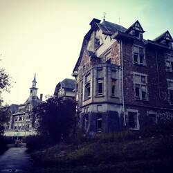 Father Prégardien had been taken to the river side, near the bridge across the Amblève, and shot. His body was thrown into the river. It should be noted that halfway the slope between the château and the bridge is a farmhouse (now abandoned and a ruin). The farming couple that lived there, Mr. and Mrs. Nicolet, were shot as well...