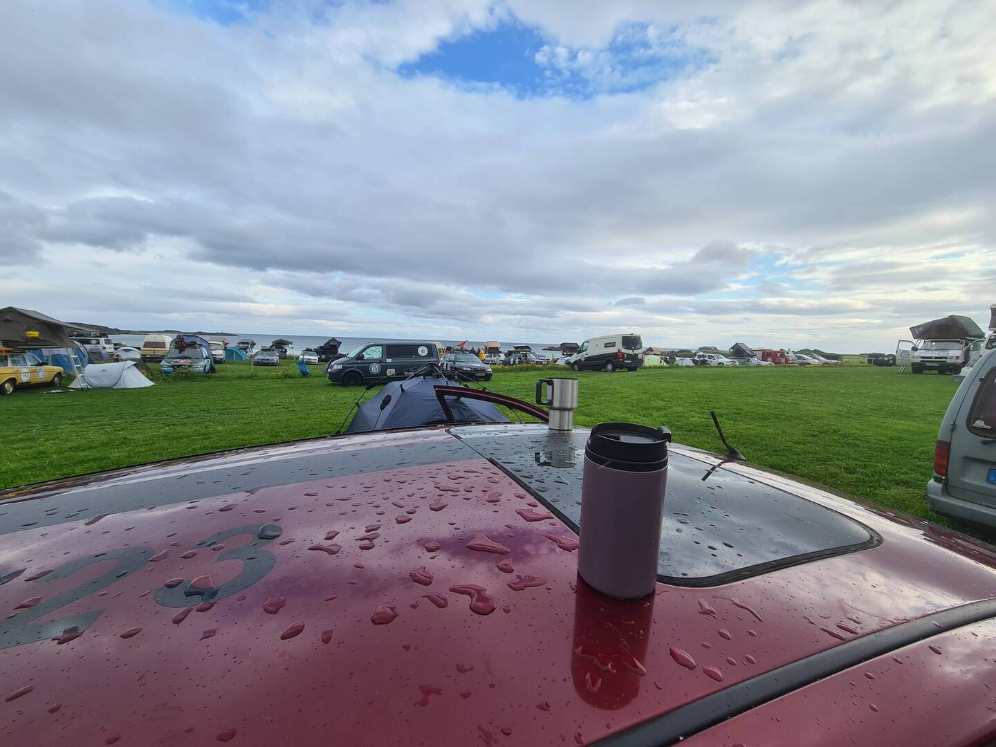 Nach einer stürmischen, regnerischen Nacht in unserem bewährten Zelt, geht es ungeduscht weiter 😀
