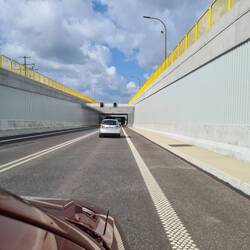Wir fahren durch den am 30.06. eröffneten Swinemünde Tunnel von Polen weiter nach Deutschland.