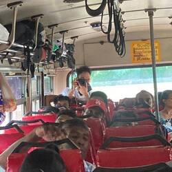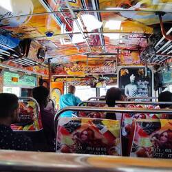 Este viaje en autobús va a ser interesante. Subimos cuando el bus está justo en marcha, pensando que lo perderíamos, pero pronto nos damos cuenta que la gente sigue subiendo en mitad de la calle cuando va lento. Las puertas están abiertas y así seguirán todo el viaje.