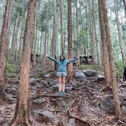 Nos despertamos y percibimos que afuera ya está amaneciendo y hay luz. Más de la que debería. Resulta que Iciar ha puesto el despertador una hora más tarde sin querer. Por un lado, hemos dormido una hora más. Por otro, nuestro plan se ha ido más o menos al garete 🙃. Decidimos subir hasta Little Adam's Peak igualmente, ya que las vistas seguro que siguen mereciendo la pena, y la luz es bonita a estas horas. Nos ponemos en marcha a las 6, y llegamos a la cima sobre las 7. el camino está bastante vacío y la luz se cuela entre las plantaciones de Té, iluminando Ella's rock.