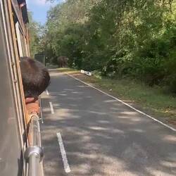 Durante las 4h que dura Asanka va parando cada vez que ve un animal, para lo que ya tiene el ojo bien entrenado 👀. Nos explica los 4 tipos de ciervos que hay en Sri Lanka, y vemos los moteados y los "samba deer". Vemos Martines Pescadores, pájaros autóctonos de Sri Lanka, monitores (lagartos parecidos a dragones de Komodo, pero en pequeño), monos, bufalos, garzas, cocodrilos, martas, jabalíes (pumbas) y otros tantos más. A mitad de camino, Iciar pega un grito cuando ve un Elefante entre la maleza a su lado del coche 🐘. Asanka no lo había visto y frena de golpe. Es un macho joven con los colmillos bastante pequeños. Nos quedamos parados durante 5 minutos mientras el elefante come y cruza el camino grácilmente por delante de nuestro coche, alejándose por el otro lado.