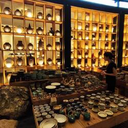 Nos recibe Isank, un joven con cara afable y mirada risueña, y tras indicarnos que dejemos las mochilas en una de las mesas del restaurante, nos va mostrando las distintas salas y espacios que conforman el edificio. Todas las piezas están diseñadas o fabricadas por el dueño de Craft Tunnel, y todas tienen algún toque especial. Hay tazas, jarrones, fuentes, teteras... Isank nos va mostrando, siempre con una sonrisa, las piezas que le gustan a él, y se sorprende y ríe cuando a Iciar y a mi nos gustan piezas completamente diatintas.