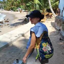 Sobre las 8:30 sale, deja la tabla, y vamos al bar del hotel a desayunar, que deja bastante que desear. La comida es normal, el precio alto y el café malísimo. Hacemos check out pero dejamos las mochilas en el hostal mientras vamos a alquilar una tabla para mí. Me djo guiar y recomendar por Iciar, que me enseña los pasos y trucos para aprender a surfear. Cojo unas cuantas olas y me consigo poner de pie en casi todas :) mientras estaba flotando esperando alguna ola incluso he visto una tortuga que ha salido a la superficie, ha saludado, y se ha vuelto a sumergir. Iciar me observa (y juzga) desde la orilla.