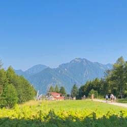 Leider war die Brücke nach Unterwössen gesperrt. Also von Raiten mit dem Bus nach Marquartstein zurück und dann den Richard Strauß Höhenweg zur Fewo!