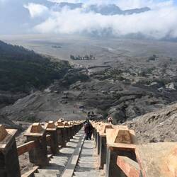 Früh am morgen klingelte schon wieder unser Wecker. Mit dem Grab ging es zuerst zum Bahnhof, sogar ohne Zwischenfälle mit der Taximafia. Das einzig korrupte an diesem Morgen war glücklicherweise nur, dass uns unser Taxifahrer die Parkgebühren abknüpfte, obwohl wir vereinbart hatten, dass er uns vor dem Parkplatz abladen würde. Am Bahnhof genehmigten wir uns vor dem Einchecken (in Indonesien muss man um aufs Perron zu gehen sogar den Pass vorweisen) noch einen Cappuccino, bevor uns dann etliche Einheimische halfen an den richtigen Ort am Perron zu stehen. Sven wurde sogar noch eine Zigi angeboten. Der Zug kam pünktlich und wir waren von seinem Komfort beeindruckt. Denn auch in der billigsten Klasse erwarteten uns gepolsterte Sitze und Aircondition. Die Indonesier halten sich sogar an die Platzreservierungen und schick gekleidetes Zugpersonal verkauft Snacks und Kaffee. Wir hatten uns riesig auf diese Zugfahrt gefreut, denn nach wilden Bus- und überteuerten Taxifahrten, haben wir Zugfahrten echt liebgewonnen. Dass wir während der Fahrt sogar noch mit einem der schönsten Panoramas unserer ganzen Reise verwöhnt wurden, war das Tüpfelchen auf dem i. So weit das Auge reichte, nur Getreide-, Gemüse und Reisfelder, durchzogen von Palmen und stellenweise unterbrochen von dichtem Dschungel und tiefen Schluchten mit wilden Flussläufen. Auch erlebten wir vom Zug aus, das alltägliche Leben der javanischen Bevölkerung hautnah und konnten bspw. Bauern bei ihrer Arbeit beobachten. Nach gut 4 Stunden kamen wir etwas nervös in Probolinggo an, denn wir hatten gelesen, dass hier die Transportmafia nach Cemoro Lawang, dem Augangsort für Touren auf den Bromo, unerbittlich sein soll. Noch beim Aussteigen hielten wir Ausschau nach anderen Backpackern und fragten auch mehrere an, ob sie ein Taxi mit uns teilen wollten. Zum Glück fanden wir tatsächlich zwei Welschschweizerin und auch ein Taxifahrer war nicht weit. Tamara handelte den Preis noch etwas runter und so hockten wir am Ende tatsächlich in einem Taxi Richtung Cemoro Lawang. Wir haben ja schon die ein oder andere wilde Fahrt erlebt, aber diese trumpfte nochmals einnen obendrauf... Entweder war der Fahrer extrem übermüdet oder er hatte etwas eingeworfen... Während der Fahrt nickte er immer wieder ein, strich sich über den Körper und öffnete irgendwann die Fenster... Nicht so prickelnd auf einer Passstrasse mit Gegenverkehr... Sven war wie ein Wachhund, ready im Fall der Fälle einzugreifen. Wir schafften es dann aber zum Glück ohne Zwischenfälle zu unserer Unterkunft. Diese war wohl die spartanischste unserer ganzen Reise, mit Plumbsklo... Nachdem wir eingecheckt hatten, organisierten wir unseren nächtlichen Ausflug, um am nächsten Morgen den Sonnenaufgang beim Bromo zu beobachten. Schon wieder früh aufstehen! Danach machten wir uns auf den Weg, den Bromo selbst zu besteigen. Da es sehr neblig, nass und kalt war, machten wir uns nicht so viele Hoffnungen. Doch als wir auf dem Rücksitz unserer Motorradtaxis durch die Caldera Bromos, dem Sandmeer, düsten, erwartete uns hinter der Wolkendecke blauer Himmel und Sonnenschein! Der Aufstieg war im Vergleich zum Ijen super easy. Es gab sogar eine Treppe hoch. Oben angekommen, mussten wir den Vulkan nur mit ganz wenigen Touris teilen, da alle Tagestouren bereits abgereist waren. Eine gute Vorbereitung ist die halbe Miete.😉 Das Gefühl auf dem Kraterrand zu stehen, in den rauchenden Schlund zu blicken und dabei das Brodeln zu hören, war unbeschreiblich und wir hätten ewig da oben stehen können. Doch noch geschädigt vom Schwefelangriff des Ijens traten wir doch irgendwann den Rückzug an, um den Schwefelwolken zu entkommen. Zuvor plauderten wir noch etwas mit einem deutschen Reisenden und zwei indonesischen Touristen, die am Schluss auch noch um ein paar Fotos mit uns baten. Obwohl auch in Java Touristen nicht ganz unbekannt sind, werden wir viel häufiger als in Bali angesprochen und neugierig gemustert. Beim Abstieg trafen wir auf zwei sympathische Schweizer, Roman und Sarina, und nach einem kurzen Schwatz verabschiedeten wir uns mit den Worten, dass wir spätestens beim Sonnenaufgang wieder aufeinandertreffen würden. Zurück in Cemoro Lawang quartierten wir uns in einem Café ein und spielten diverse Weiterreise-Alternativen durch, da unser ursprünglicher Plan direkt nach Malang weiterzureisen, nicht aufging. Aber für jedes Problem gibt es ja bekanntlich eine Lösung und als wir die unsrige gefunden hatten, gingen wir zurück in unsere Unterkunft, wo es anscheinend das beste Essen des Dorfes geben sollte. Wir staunten nicht schlecht, als wir da bereits wieder auf Roman und Sarina trafen. Bei Nasi Campur (gemischter Reis mit allem garniert, was gerade da ist) und Lalapan Ayam (Chili-Hühnchen) setzten wir unsere Gespräche fort, bis wir uns mit dem Ziel, früh schlafen zu gehen, voneinander verabschiedeten.Read more